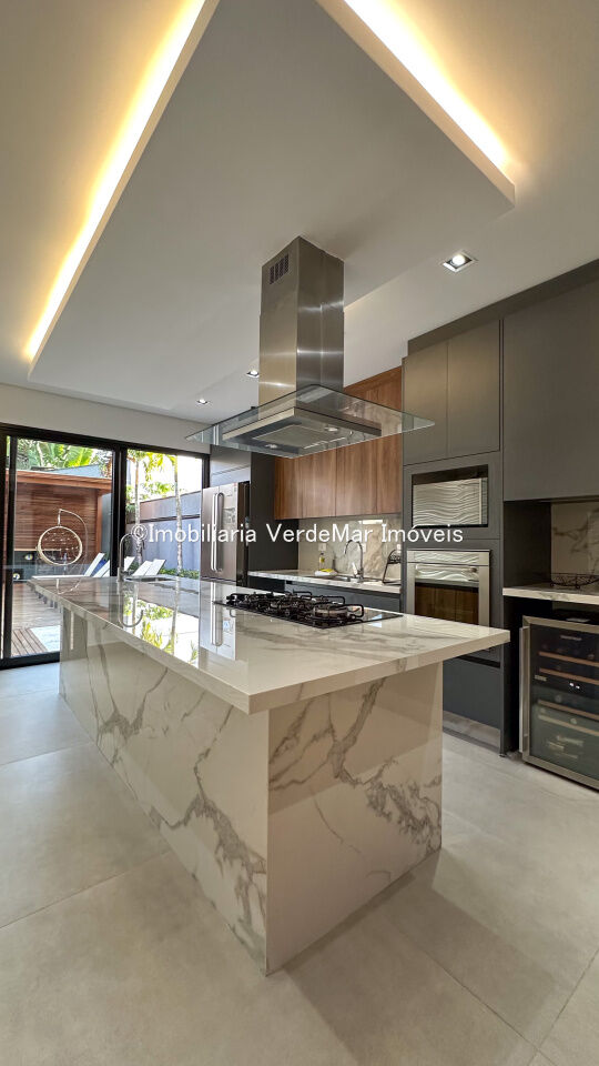 Casa nova frente praça à venda no Jardim Acapulco na praia de Pernambuco em Guarujá, com 06 suítes sendo 01 máster com closet e hidromassagem, sala para 3 ambientes, cozinha planejada, despensa e área de serviços.