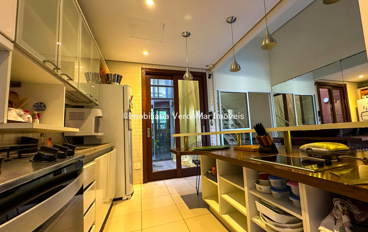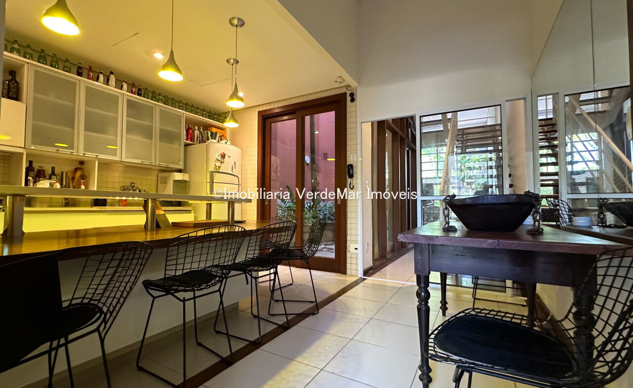 Jequiti Residence na Praia de Pernambuco em Guarujá, casa a VENDA com 04 suítes todas com ar condicionado, sala para 3 ambientes com terraço, jardim externo, elevador, lavabo, cozinha planejada, 4 banheiros, área de serviço e despensa.