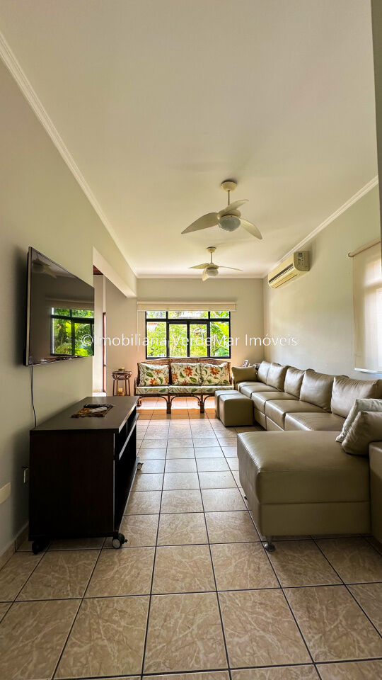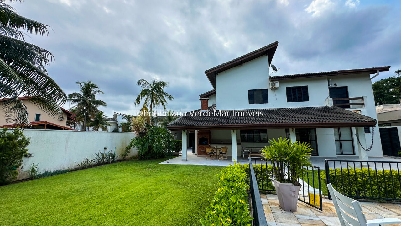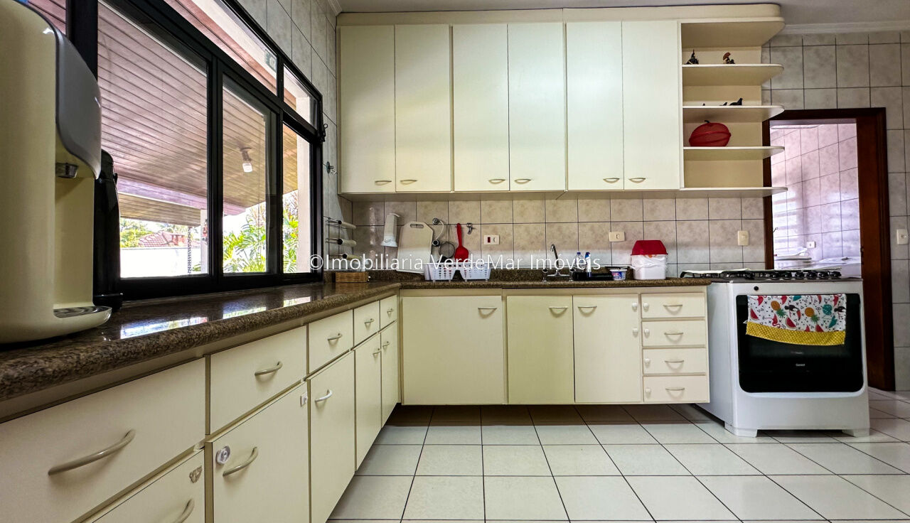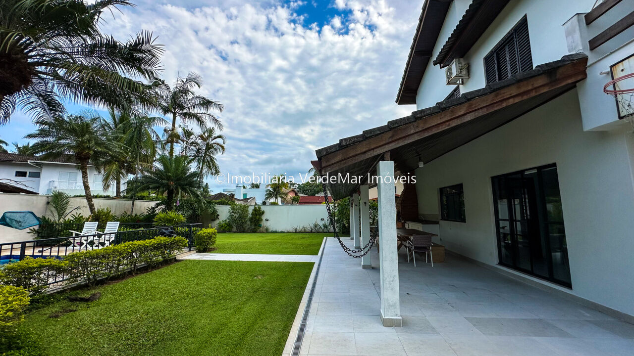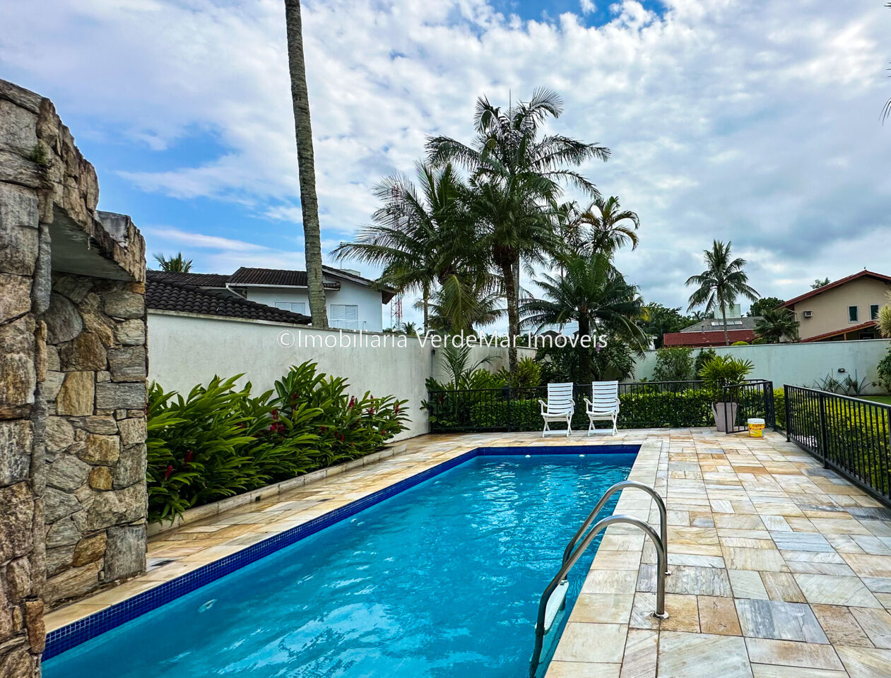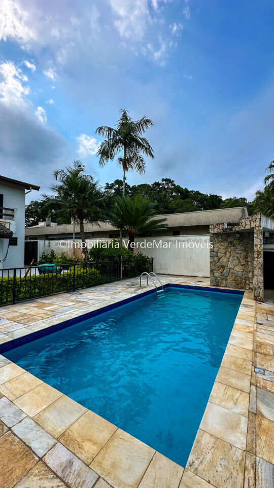 Casa à venda em condomínio na praia de Pernambuco no Guarujá, com 5 suítes, sendo uma no térreo e a 1 máster com hidromassagem, sala para 2 ambientes, lavabo, cozinha planejada, área de serviços e dependência de empregada.