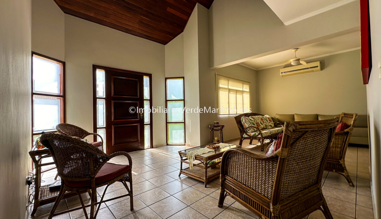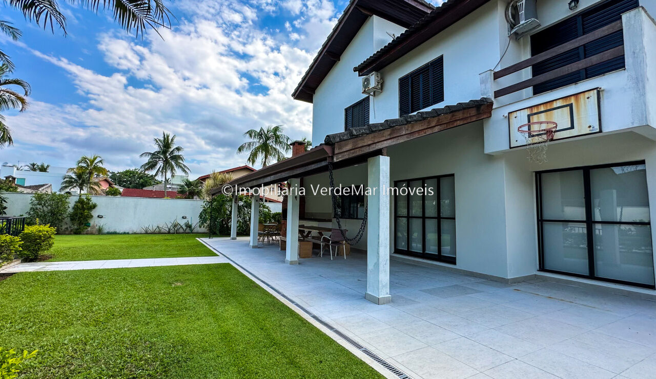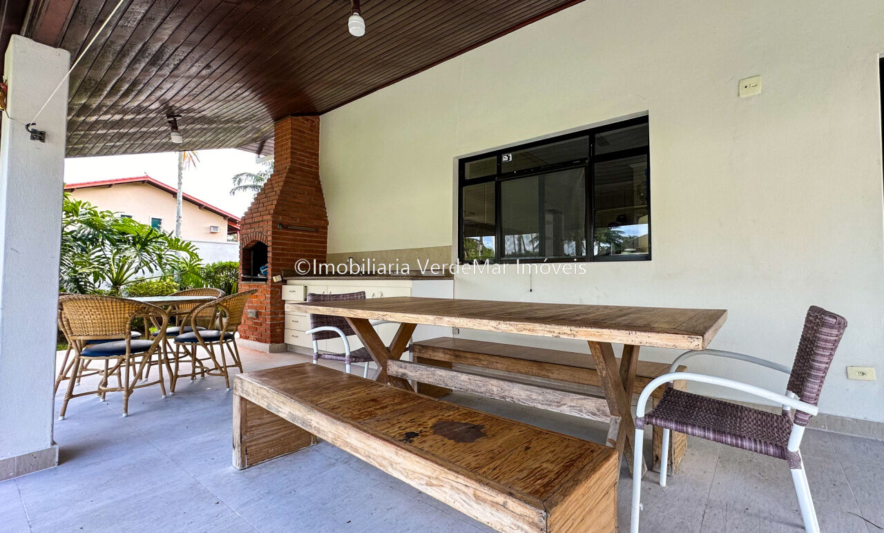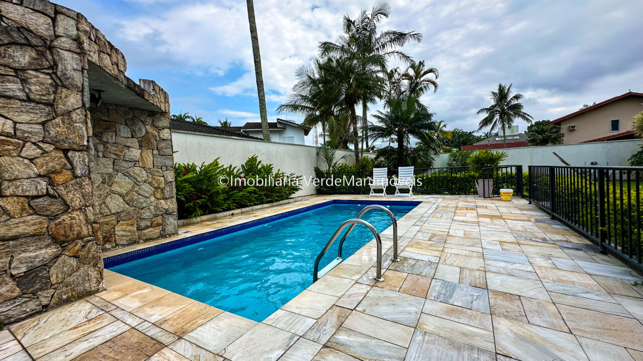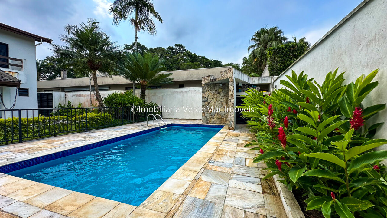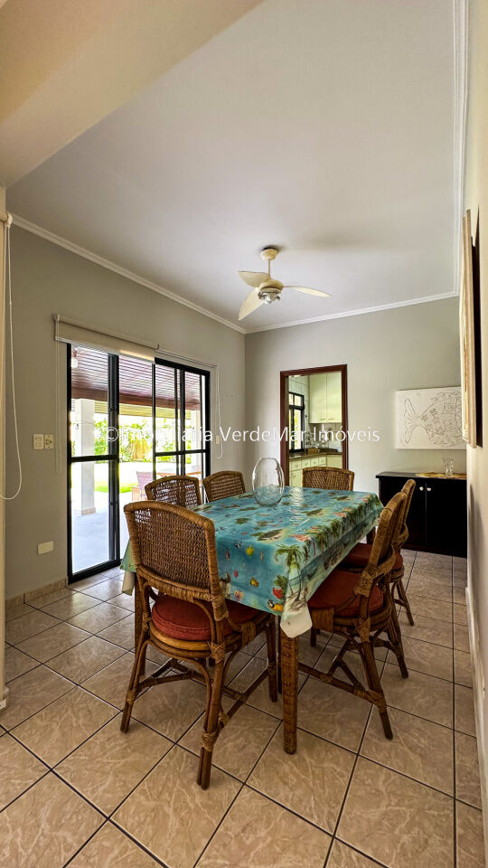 Casa à venda em condomínio na praia de Pernambuco no Guarujá, com 5 suítes, sendo uma no térreo e a 1 máster com hidromassagem, sala para 2 ambientes, lavabo, cozinha planejada, área de serviços e dependência de empregada.