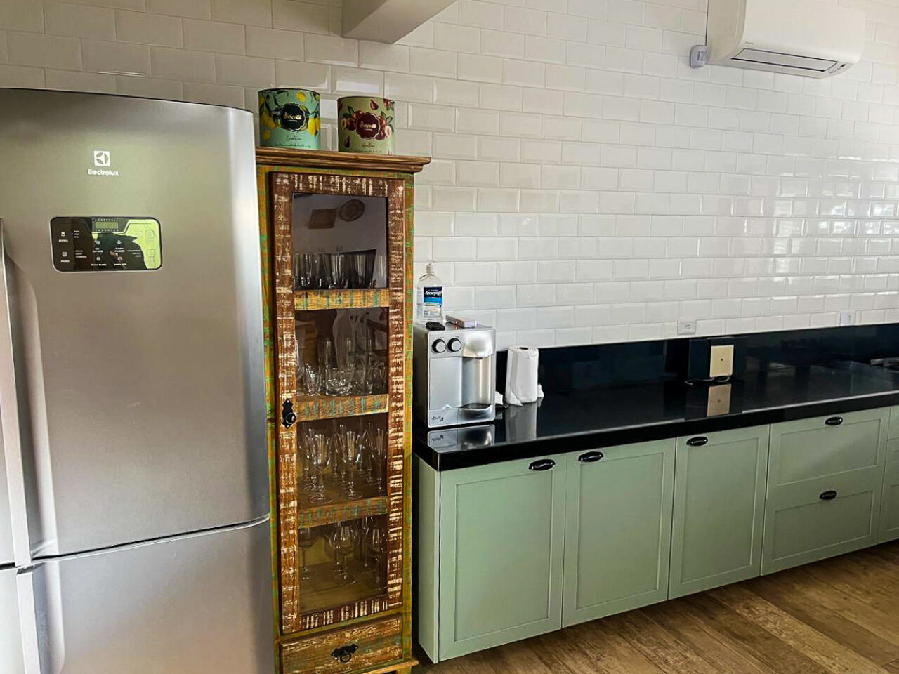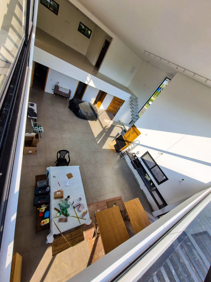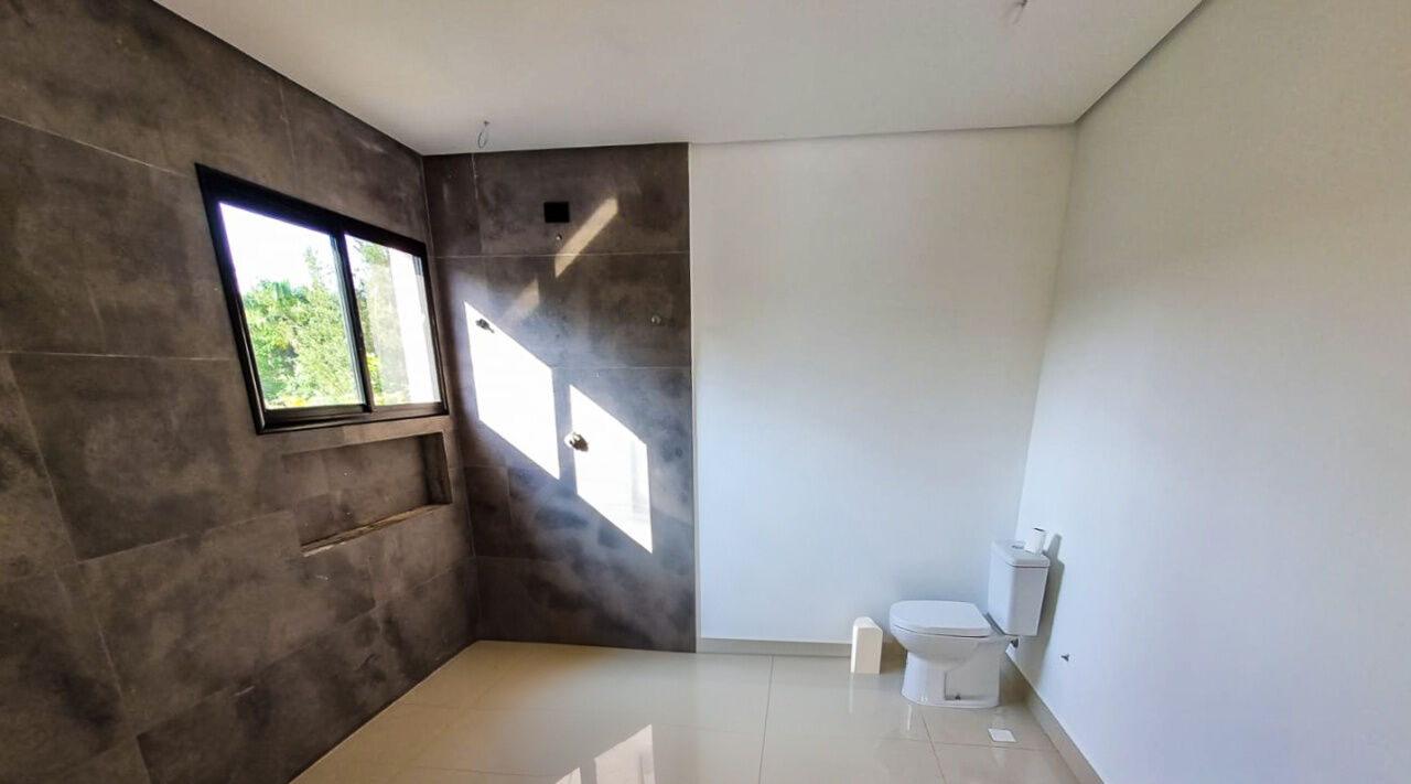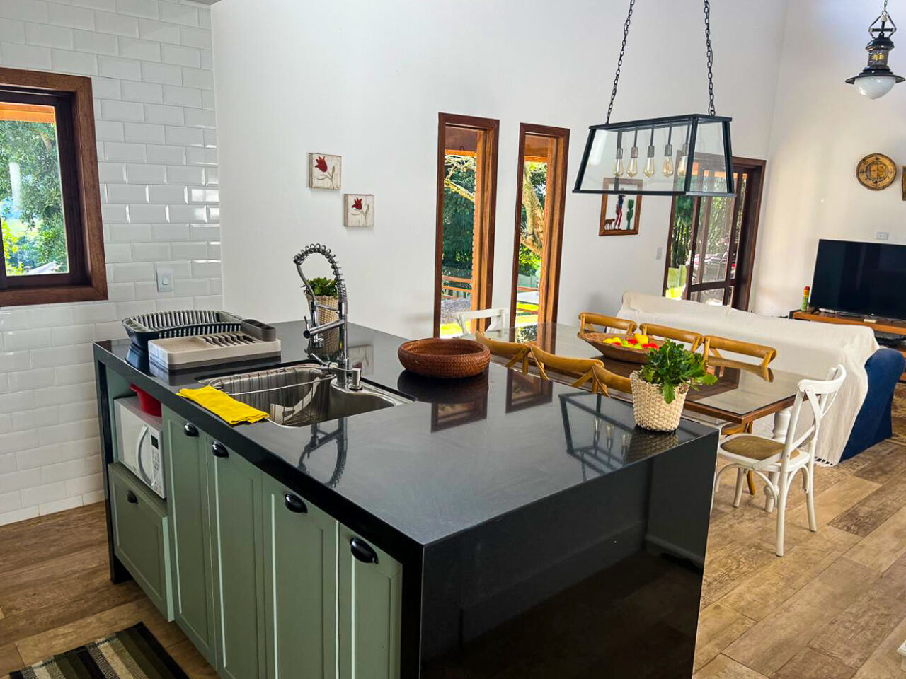 Condomínio Park Lane na Praia de Pernambuco em Guarujá, casa nova à venda com 04 suítes, sala para 02 ambientes com mezanino, lavabo, cozinha planejada, e área de serviço.
