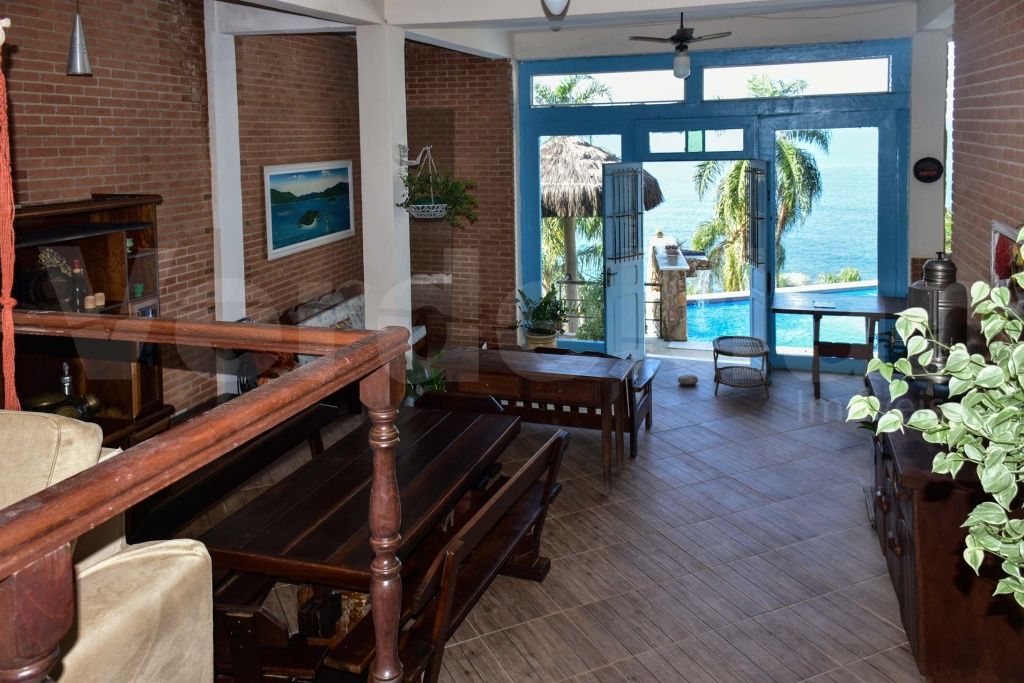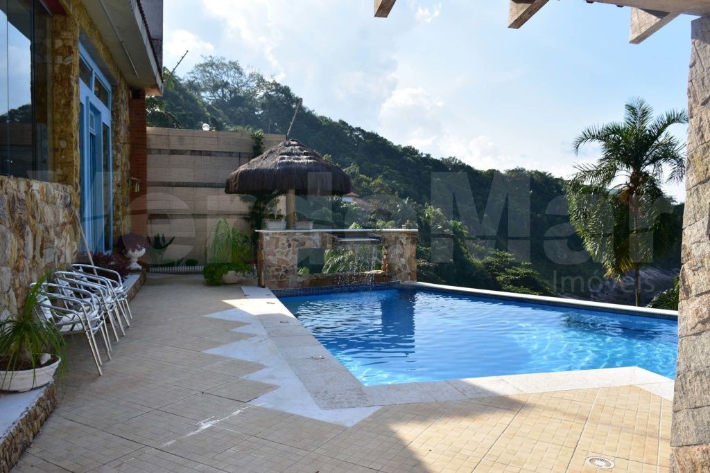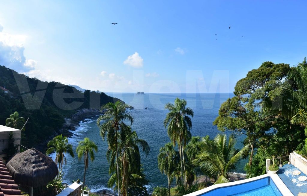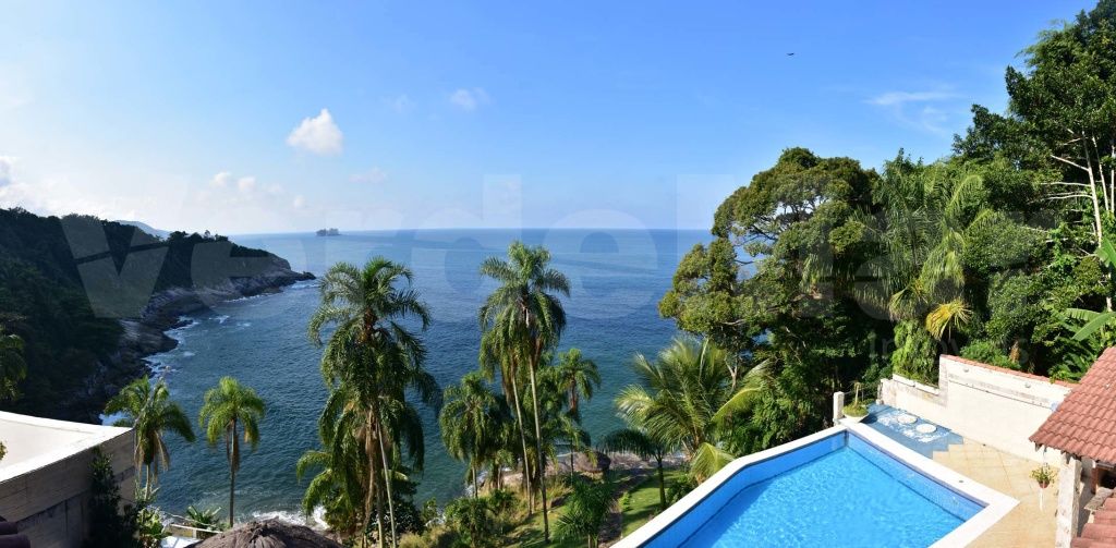 Casa com vista para o mar à venda no Morro do Sorocotuba em Guarujá, com 04 dormitórios sendo 01 suíte máster com banheira de hidromassagem, sala para 02 ambientes com terraço, cozinha americana, lavanderia e casa de caseiro.