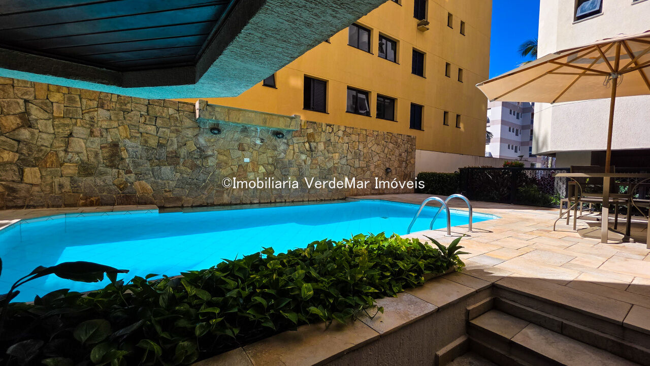 Prédio conta com piscina e sauna, churrasqueira, salão de jogos, serviço de praia e zelador.