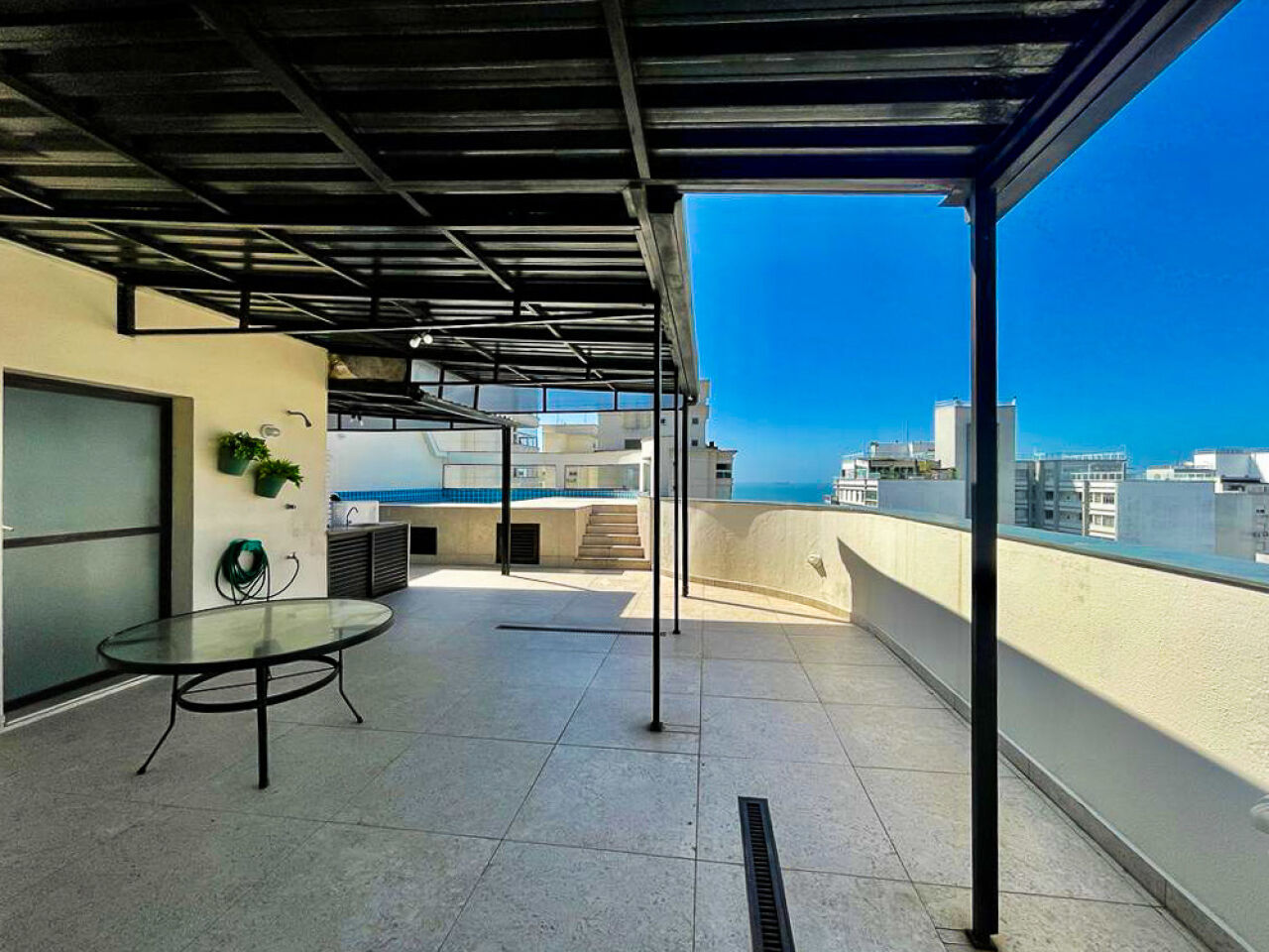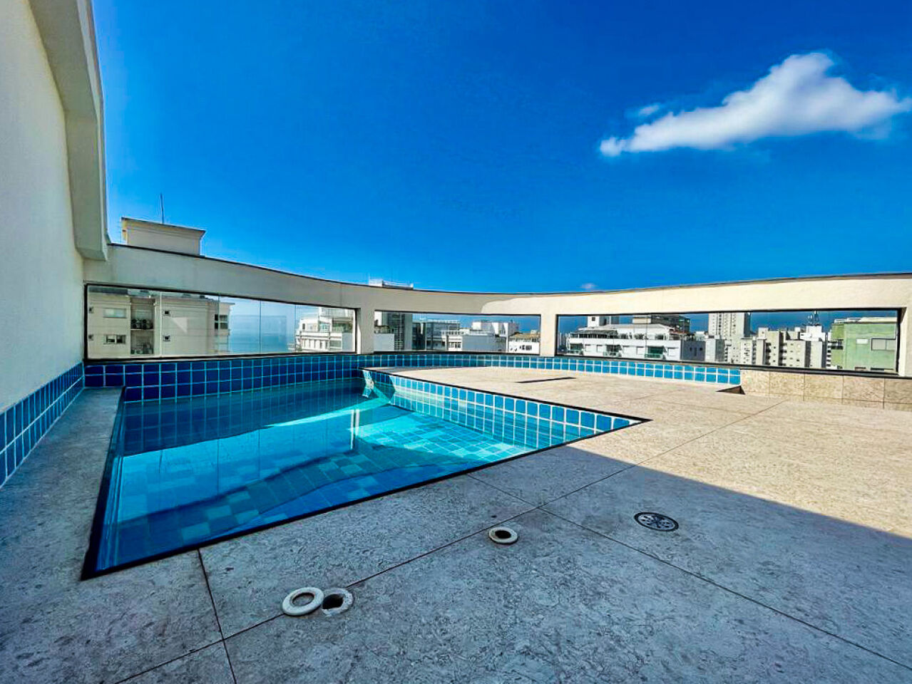 Praia de Pitangueiras, cobertura penthouse, terraço com piscina, solarium e churrasqueira privativa,sala para 02 ambientes , vista ao mar, piso em mármore, 3 dormitórios sendo 01 suíte, W.C. social, copa, cozinha, área de serviço e 2 vagas no prédio.