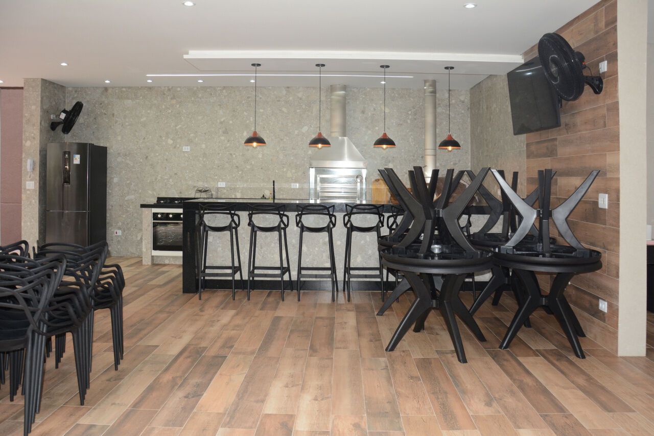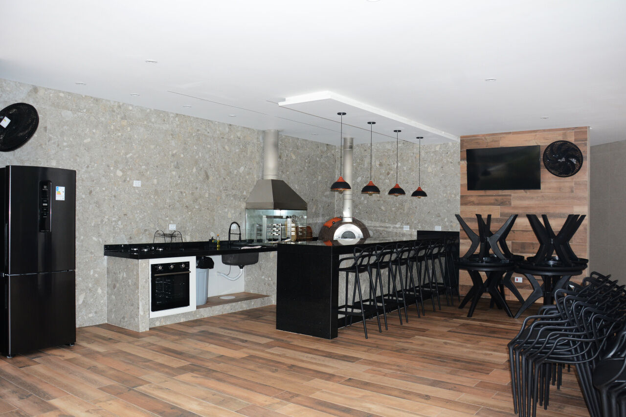 Lazer do prédio com piscina adulto e infantil, salão de jogos, salão de festas, academia, quadra poliesportiva, sauna, home office, sala de leitura, play ground e espaço gourmet com churrasqueira e cozinha de apoio.